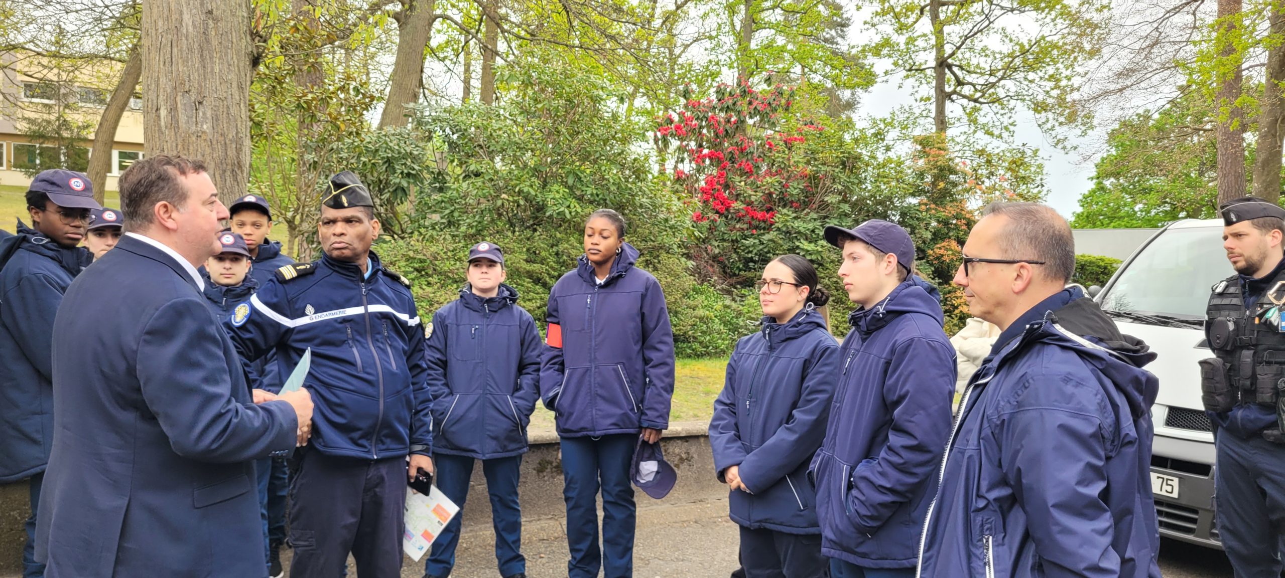 Nos Cadets ont pu ainsi aller au contact des visiteurs et leur présenter les problématiques (cadre légal), « vraies-fausses raisons » (se défendre, être respecté, …) , et conséquences (aggressions, blessés, décès, …) liés au port d’armes blanches tant en milieu scolaire, que « dans la rue ». De très nombreux flyers (crées par nos Cadets) ont ainsi été distribués et toutes les explications données par nos Cadets, eux-mêmes sensibilisés dans leur environnement à cette problématique.Après nous être tous retrouvés (nos 15 Cadets et nos Encadrants) à l’entrée du GGD 78 à Versailles, nous avons fait mouvement vers le Lycée Louis BASCAN de Rambouillet où le Proviseur Jean-Francois GULLERM nous a chaleureusement accueilli. Ce 11 avril étant la Journée Portes Ouvertes du Lycée, c’était donc une occasion parfaitement ciblée pour aller à la rencontre de jeunes Lycéens (et de leurs parents) afin de les sensibiliser à ce sujet dramatique nourrissant malheureusement les colonnes des faits divers de plus en plus régulièrement.